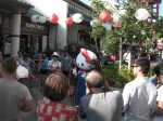 By this time, I was getting really hungry so stopped for a late lunch at one of my usual restaurants. Strolling back through the Japanese Village Plaza, I was happy to see it festively decorated and filled with lots of people enjoying the events. Kitty-chan was even there for people to get their photos taken.