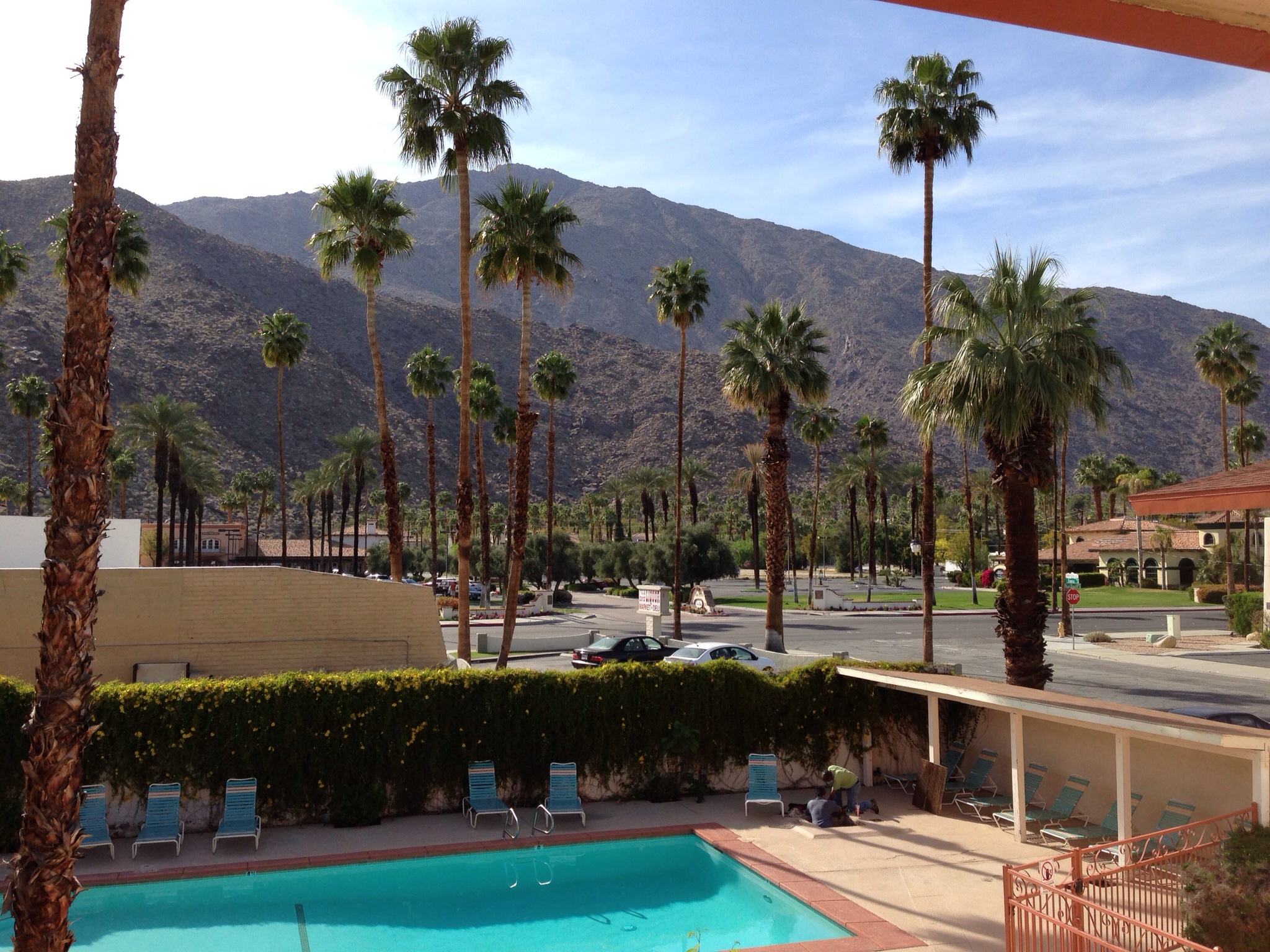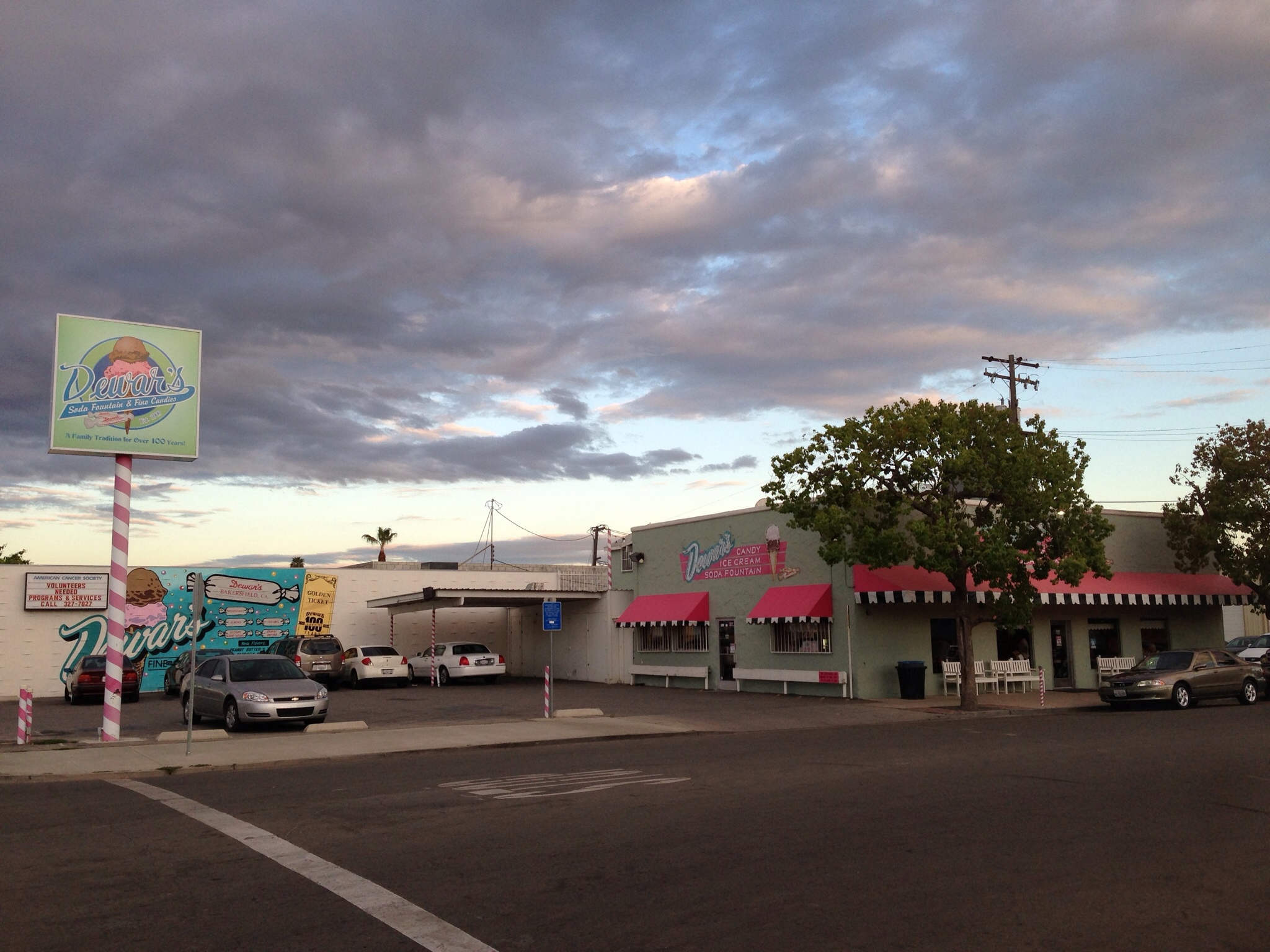 Here are a couple photos from the trip: a shot from my motel in Palm Springs, and the evening sky above Dewar's famous ice cream shop in Bakersfield: